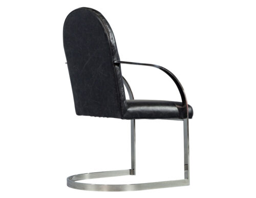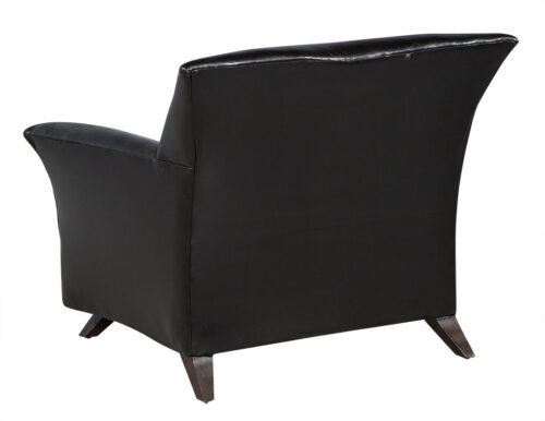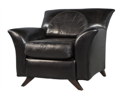 Pair of Black Leather Oversize Bat Wing Style Parlor Chairs
