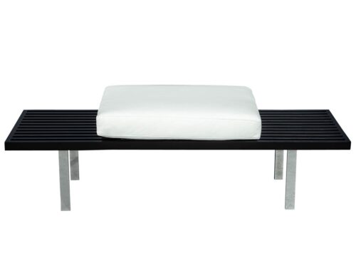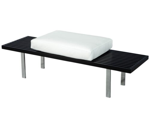 Vintage Ebonized George Nelson Style Bench with Leather Seat