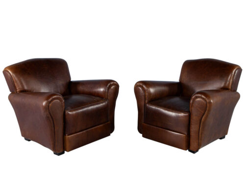 Pair of Mid-Century Modern Danish Lounge Chairs Stitched Leather