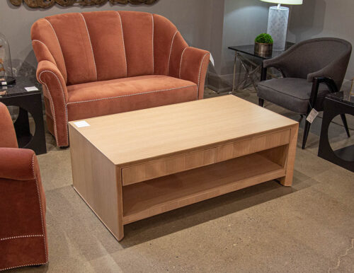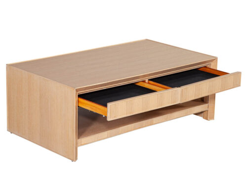 Modern Oak Coffee Table with Integrated Pullout Ottomans