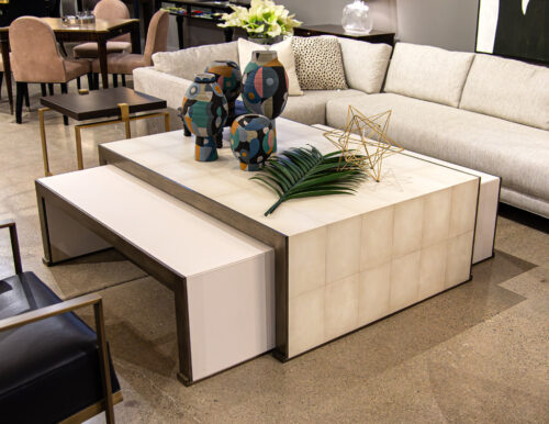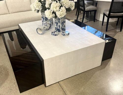 Modern Faux Shagreen Coffee Table with Macassar Nesting Tables