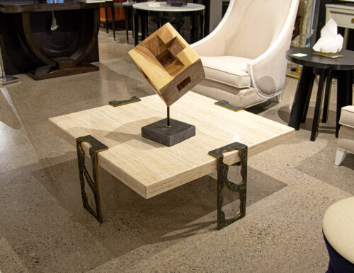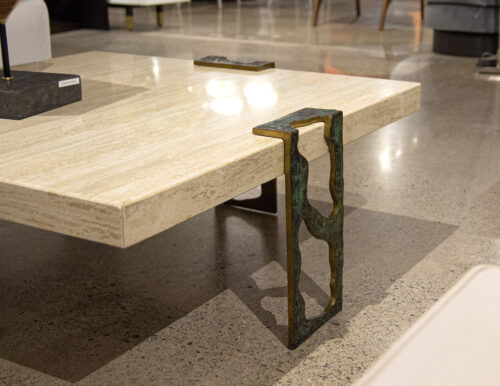 Vintage Travertine Cocktail Table with Bronze Accents by Willy Ceysens