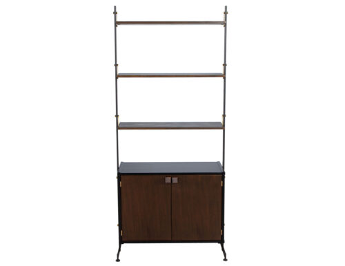 Modern Oak and Brass Bookcase Cabinet