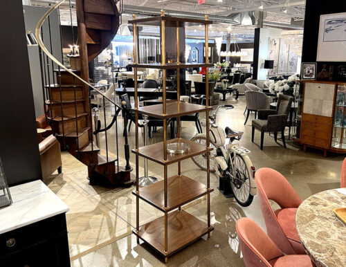 Etagere Bookcase Shelving Unit in Walnut and Metal