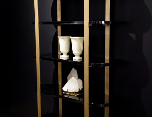 Modern Bookcase Cabinet in Brass and Black Lacquer