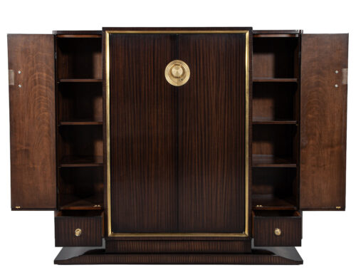 French Art Deco Burled Walnut Armoire Cabinet