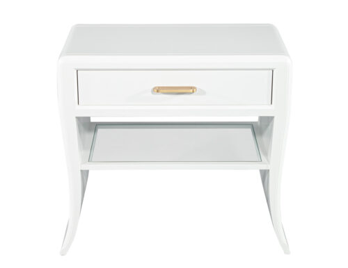 Pair of Black Lacquered Curved Nightstands Chest of Drawers