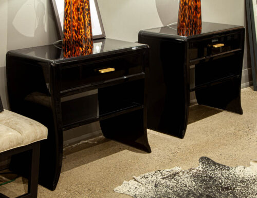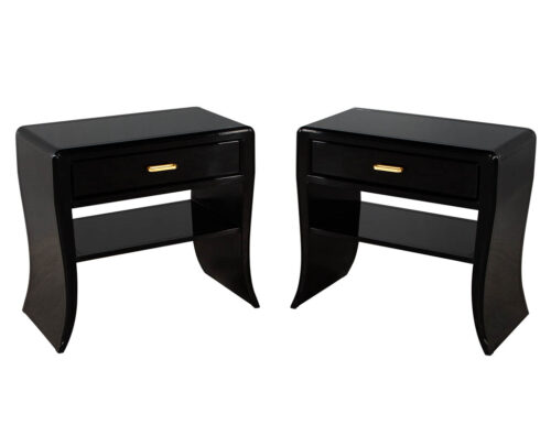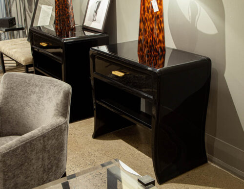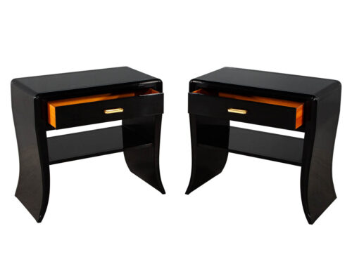Pair of Curved Black Modern End Tables