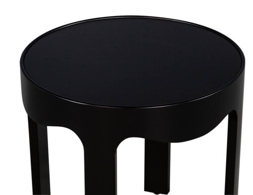 Ralph Lauren Tubular Polished Stainless Steel & Black Lacquer End Table