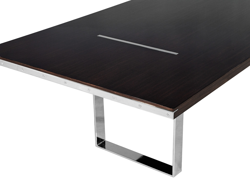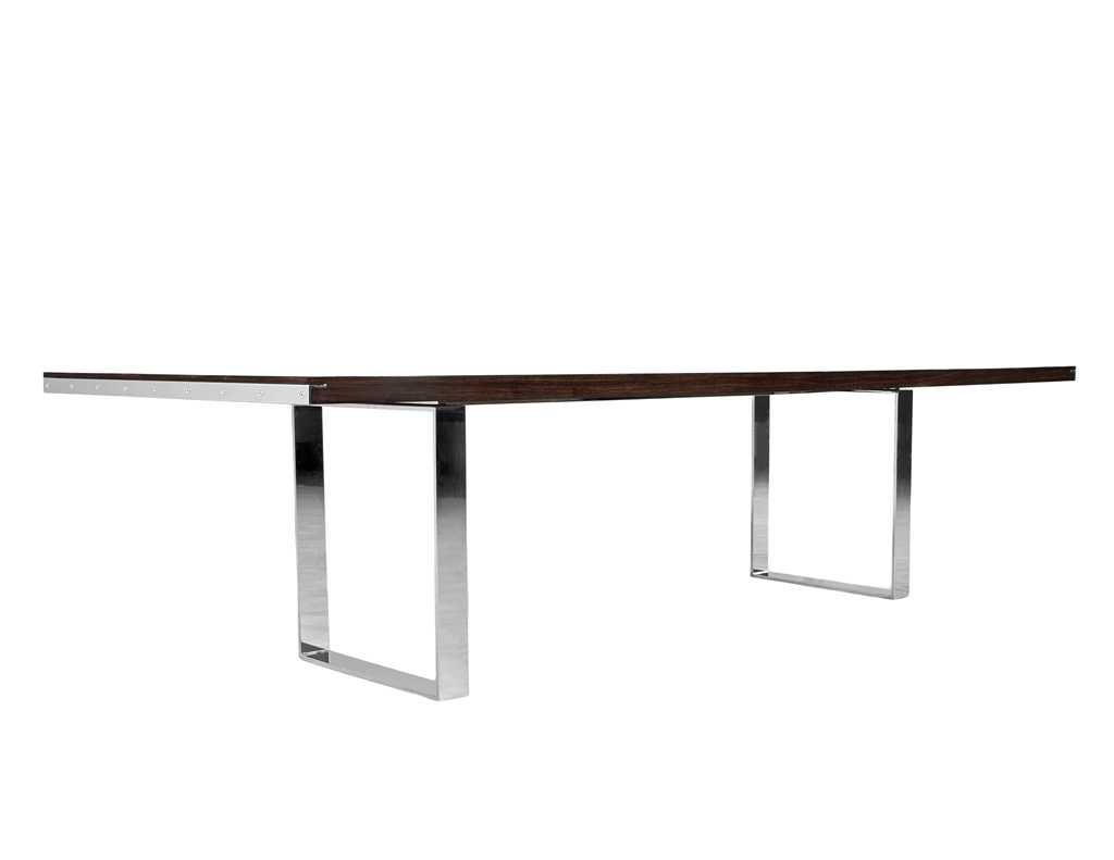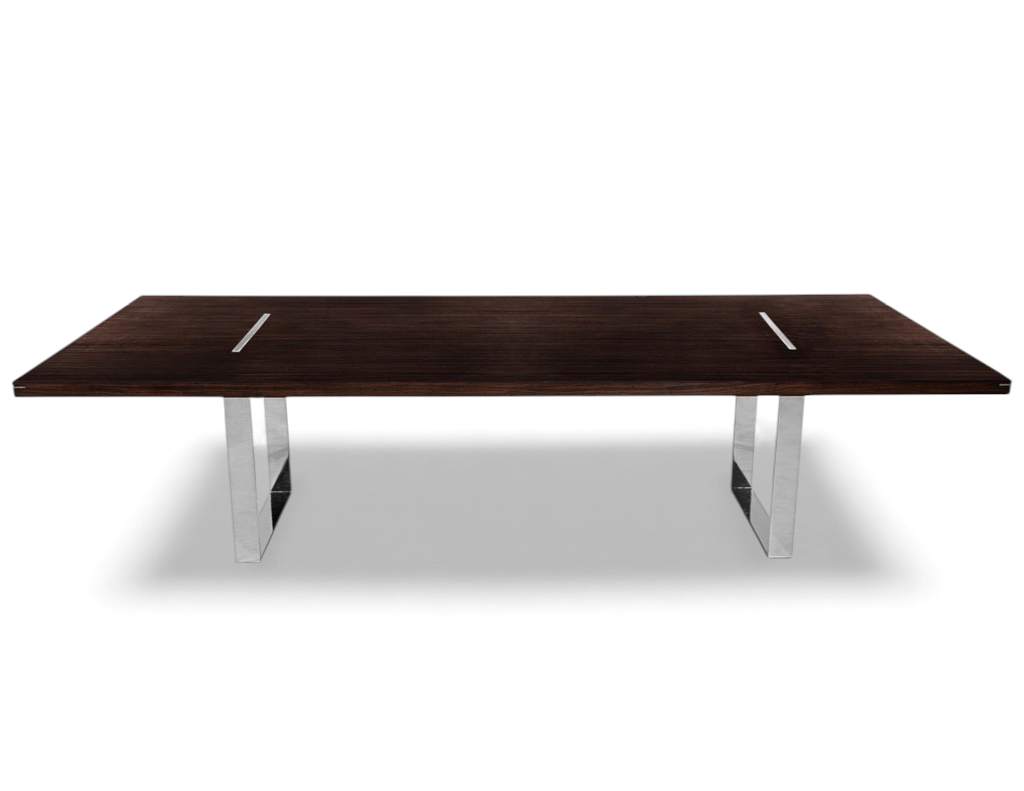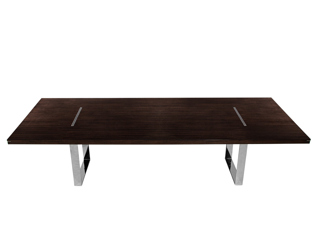 Custom Modern Walnut Dining Table with Stainless Steel Pedestals