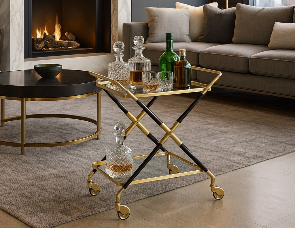 This stunning vintage bar cart, designed by the legendary Gio Ponti, embodies the essence of Italian modernism from the 1960s. Crafted in Italy, the piece features a striking combination of brass, black stained wood, and clear glass, creating a sleek and sophisticated aesthetic. Its clean lines and minimalist silhouette are characteristic of Ponti’s design language. This impeccably preserved piece is not just a functional bar cart, but a true testament to mid-century design excellence.