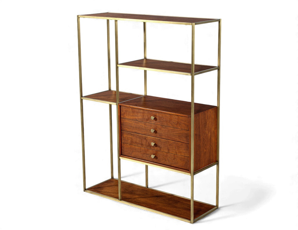 Mid-Century Modern Walnut and Brass Bookcase Etagere by Paul McCobb
