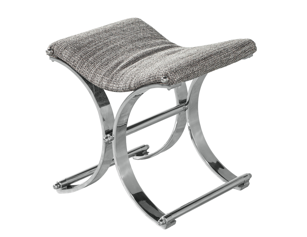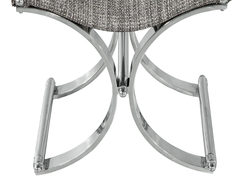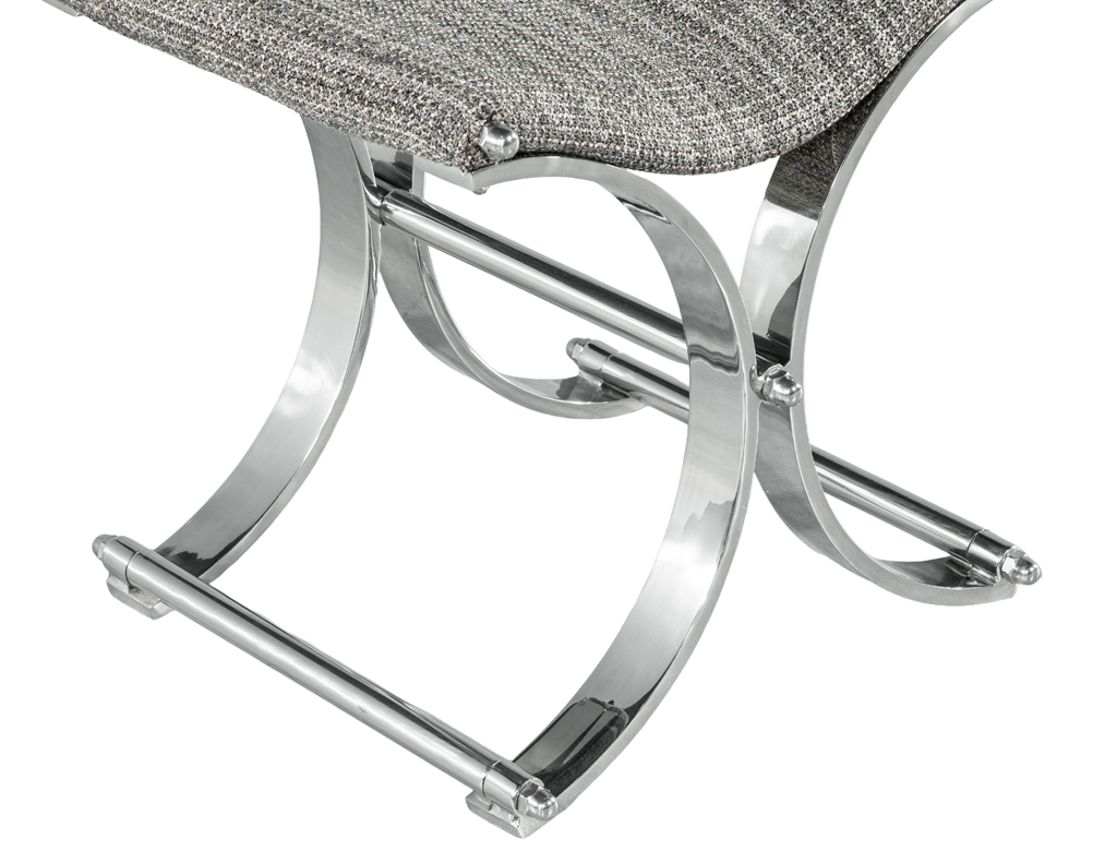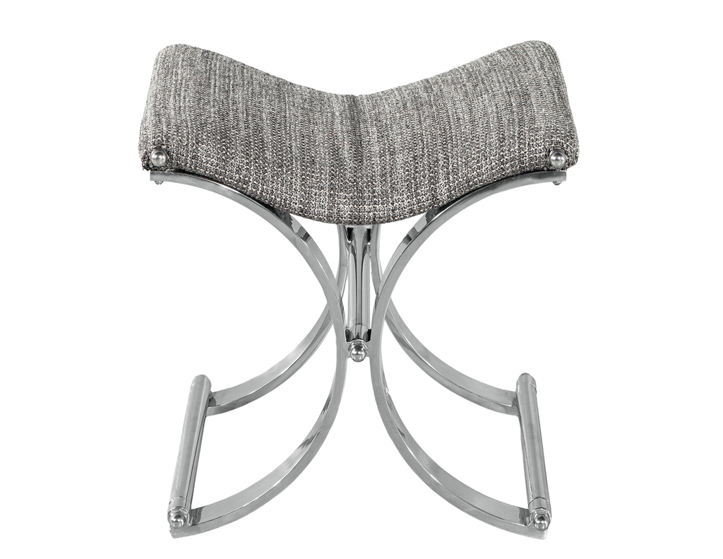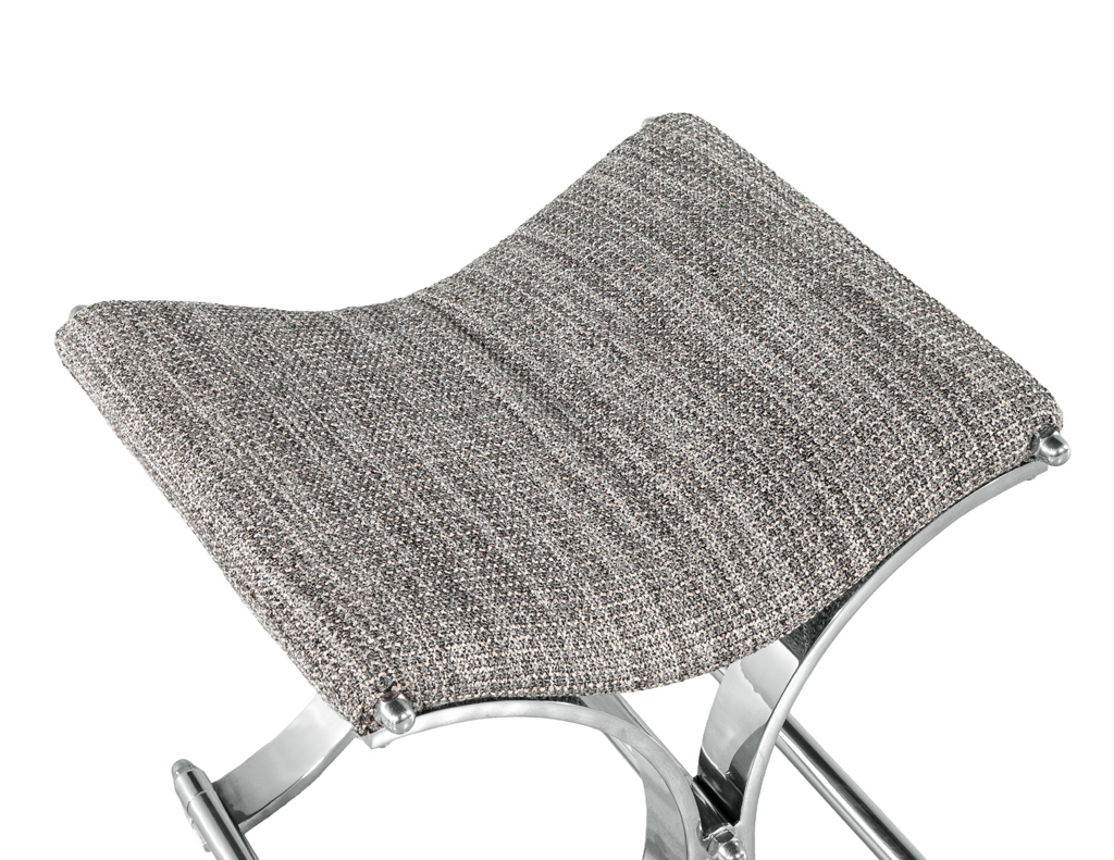 This striking pair of vintage polished metal X-benches feature uniquely curved frames that embody iconic 1970’s mid-century modern design with a fresh, contemporary edge. The newly upholstered seats are finished in a high-performance textured grey and white fabric, adding subtle sophistication and durability. While the polished metal shows minimal imperfections consistent with age, the benches remain in exceptional condition. A timeless and sculptural addition to any refined interior.